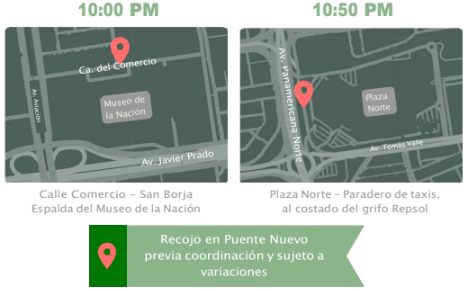 - Solo habrán 10 minutos de tolerancia en cada punto de espera.