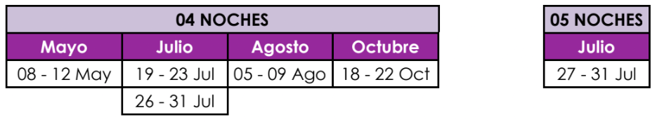 - TARIFA POR PERSONA EN DOLARES AMERICANOS DESDE: