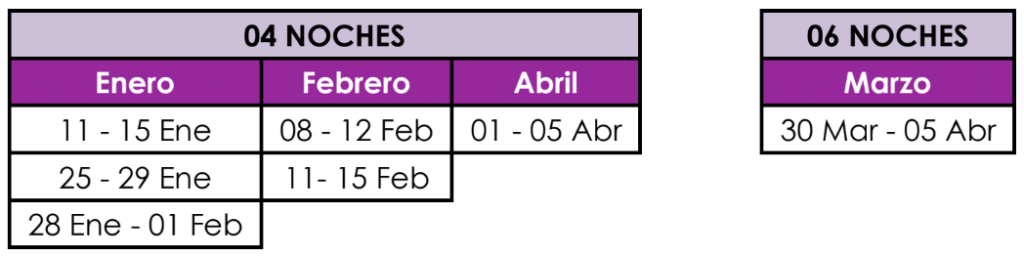 - TARIFA POR PERSONA EN DOLARES AMERICANOS DESDE: