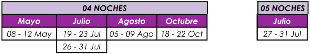 - TARIFA POR PERSONA EN DOLARES AMERICANOS DESDE: